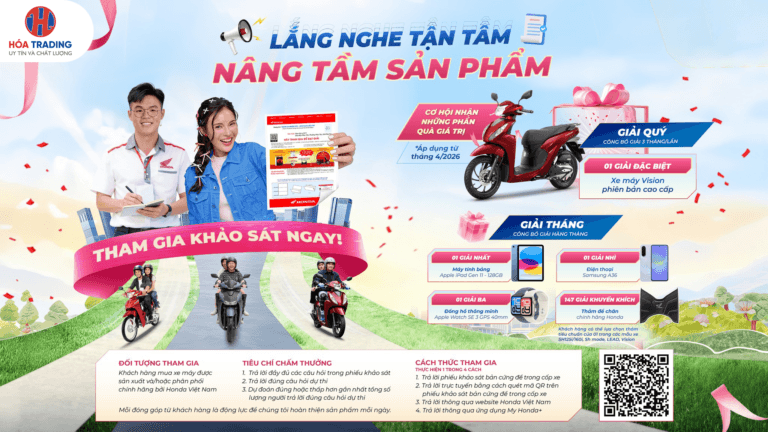 📢 SH 125i – ĐẲNG CẤP DẪN ĐẦU, GIÁ SIÊU MỀM THAM GIA KHẢO SÁT – RINH QUÀ LIỀN TAY TOP 4 DẤU HIỆU XE CẦN THAY NHỚT AN TOÀN CHẤT LƯỢNG – TẬN HƯỞNG MUÔN NƠI HÓA Trading UY TÍN., CHẤT LƯỢNG. Xe máy Trả góp Sửa chữa Khuyến mãi Phụ tùng Địa chỉ CTKM Tin khuyến mãi 21/04/2026SH 125i – ĐẲNG CẤP DẪN ĐẦU, GIÁ SIÊU MỀM 20/04/2026THAM GIA KHẢO SÁT – RINH QUÀ LIỀN TAY 14/04/2026WINNER R – TỐC ĐỘ BẢN LĨNH 12/04/2026RỰC RỠ CỜ HOA -BÙNG NỔ ƯU ĐÃI: MỪNG ĐẠI LỄ 30/4 – 1/5 25/03/2026[VISION] BẬT SẮC TỰ TIN – CÂN MỌI OUTFIT xe máy Tin xe máy 19/04/2026TOP 4 DẤU HIỆU XE CẦN THAY NHỚT 16/04/2026AIR BLADE 125 – BẬT CHẤT RIÊNG, CHẤT NGẦU MỖI NGÀY! 15/04/2026LỐP XE – NHỎ NHƯNG QUYẾT ĐỊNH AN TOÀN LỚN! 13/04/2026HONDA VISION 2026: ĐỊNH HÌNH PHONG CÁCH – DẪN ĐẦU XU HƯỚNG 26/03/2026[PRO HONDA] Bạn đã chọn đúng loại dầu nhớt cho xe của mình chưa? HÓA Tin công ty HỆ THỐNG HÓA TRADING CHÚC MỪNG NGÀY QUỐC TẾ PHỤ NỮ 8/3 08/03/2026 HEAD HÓA CẦN THƠ | VINH DỰ ĐÓN TIẾP LÃNH ĐẠO CẤP CAO HONDA VIỆT NAM 05/03/2026 THÔNG BÁO LỊCH NGHỈ TẾT BÍNH NGỌ 2026 12/02/2026