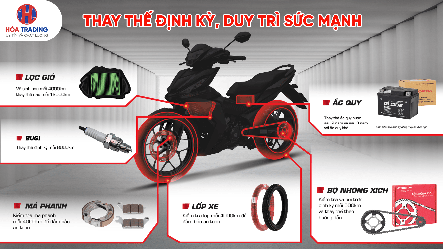 Hãy để xe được chăm đúng cách, hành trình thêm vững chắc nha Lịch thay – kiểm tra định kỳ các phụ tùng quan trọng LỌC GIÓ BUGI MÁ PHANH LỐP XE ẮC QUY BỘ NHÔNG XÍCH Muốn xe chạy khỏe – ghé ngay HỆ THỐNG HÓA TRADING kiểm tra liền nha! >>> Xem thêm: KIỂM … Đọc tiếp