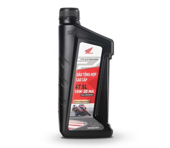 Dầu Tổng hợp Cao cấp 4T SL 10W-30 MA Pro Honda đặc chế cho các dòng xe côn tay và xe thể thao Honda chứa dầu gốc tổng hợp toàn phần được sản xuất với quá trình kiểm soát nghiêm ngặt và kỹ thuật cao tạo ra các phân tử có hình dáng và kích thước đồng nhất. Dầu Tổng hợp Cao cấp 4T SL 10W-30 MA Pro Honda cho khả năng hoạt động bền bỉ dù ở nhiệt độ cao hay nhiệt độ rất thấp, tối ưu công suất động cơ Honda, bảo vệ động cơ tối ưu và tiết kiệm nhiên liệu. Honda Việt Nam khuyến cáo sử dụng: Thay lần đầu sau 1,000km. Các lần sau thay mỗi 2,000km-2,500km.