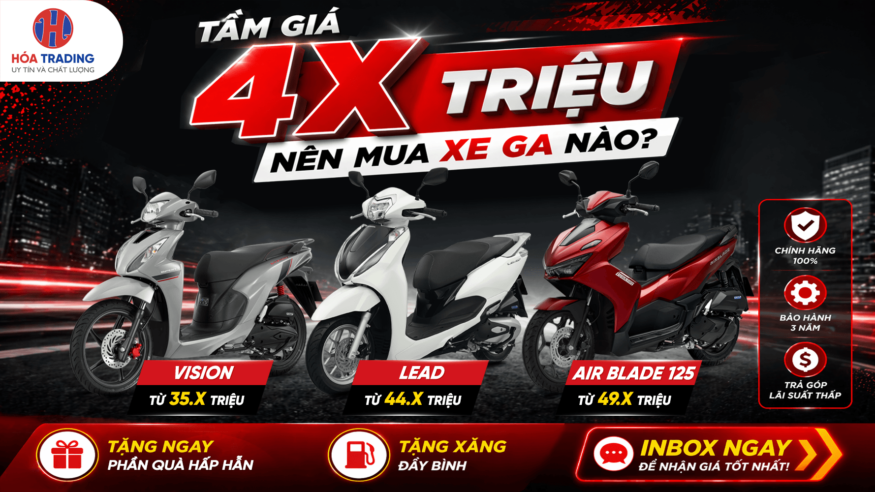 🔹 Honda Vision – Nhỏ gọn, nhẹ nhàng, tiết kiệm xăng, cực hợp đi học – đi làm mỗi ngày. 🔹 Honda Air Blade 125 – Thiết kế thể thao, động cơ mạnh mẽ, trang bị hiện đại, phù hợp người thích cá tính. 🔹 Honda Lead – Cốp siêu rộng, tiện dụng, vận hành … Đọc tiếp