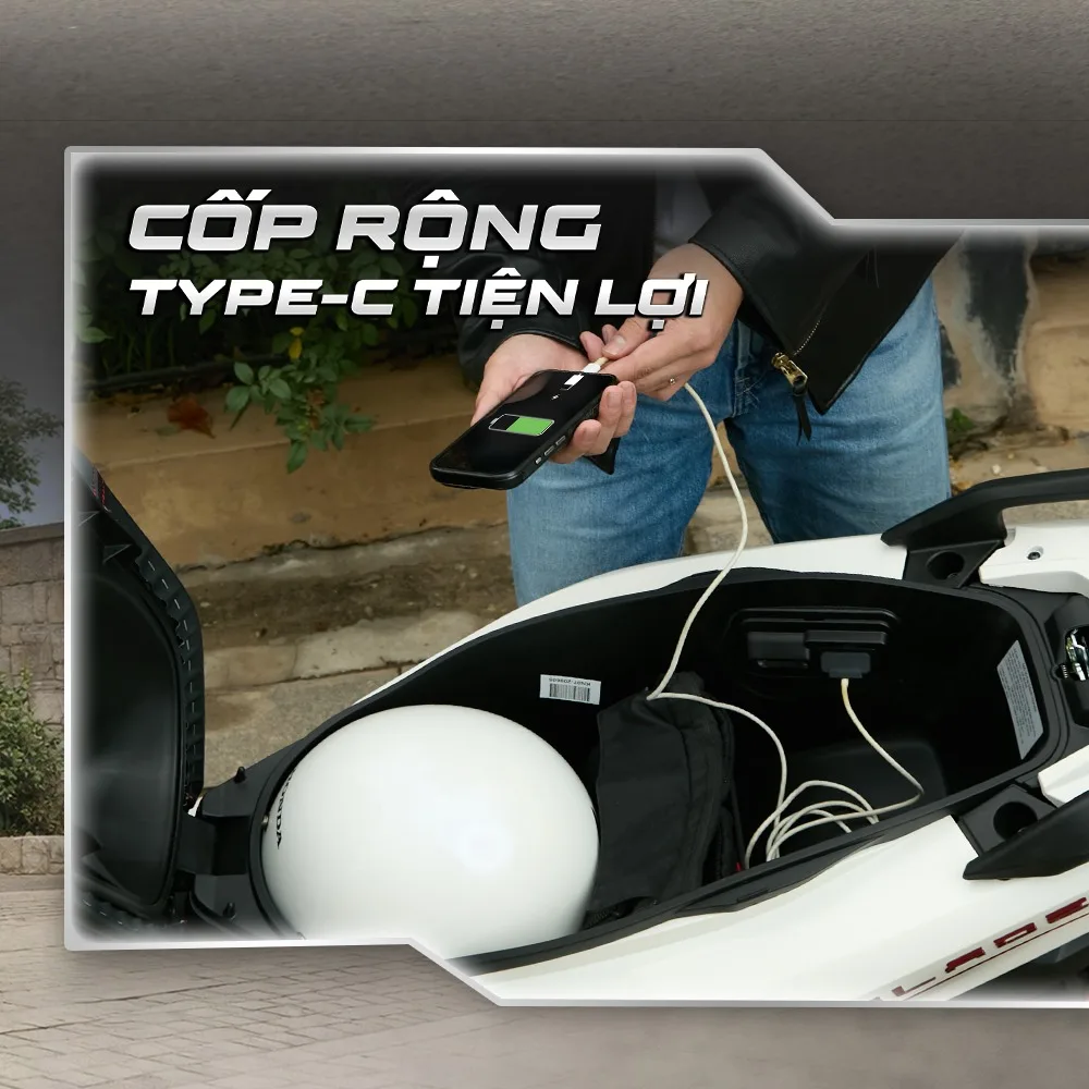 Cốp xe rộng rãi tích hợp cổng sạc Type-C tiện lợi, giúp mang theo nhiều vật dụng và sạc nhanh trên mọi hành trình.