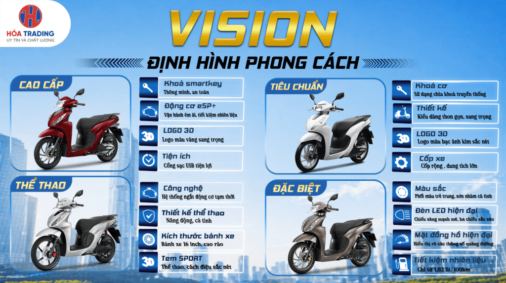 HỆ THỐNG HÓA TRADING tự hào là đơn vị tiên phong trong lĩnh vực cung cấp xe máy chính hãng Honda Việt Nam. Với kinh nghiệm hơn 15 năm chúng tôi cam kết mang đến quý khách hàng chất lượng dịch vụ tốt nhất với mức chi phí vô cùng cạnh tranh. Khi có nhu cầu mua sắm xe máy chính hãng Honda đến ngay HỆ THỐNG HÓA TRADING