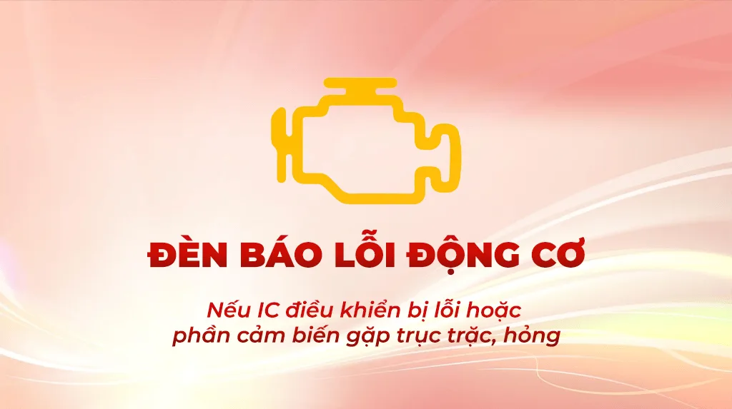 Đèn báo lỗi động cơ sáng nếu IC điều khiển bị lỗi hoặc phần cảm biến gặp trục trặc, hỏng. Khi thấy đèn tự dưng sáng, bạn nên dừng lại và đến ngay các cửa hàng sửa chữa để được kiểm tra và thay IC.